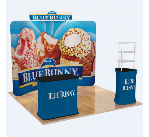 At Trade Show Display Depot, we believe a great expo booth design should be both visually impressive and easy to manage. This 10′ tension fabric display is one of our most popular creative trade show displays because it offers a perfect blend of high-end aesthetics and practical convenience. It gives you the look of a premium, custom-built exhibit without the hassle or high cost. Our team of expert booth builder professionals ensures every detail is perfect, from the durable aluminum frame to the vivid, custom-printed graphic, providing you with a reliable and professional solution.