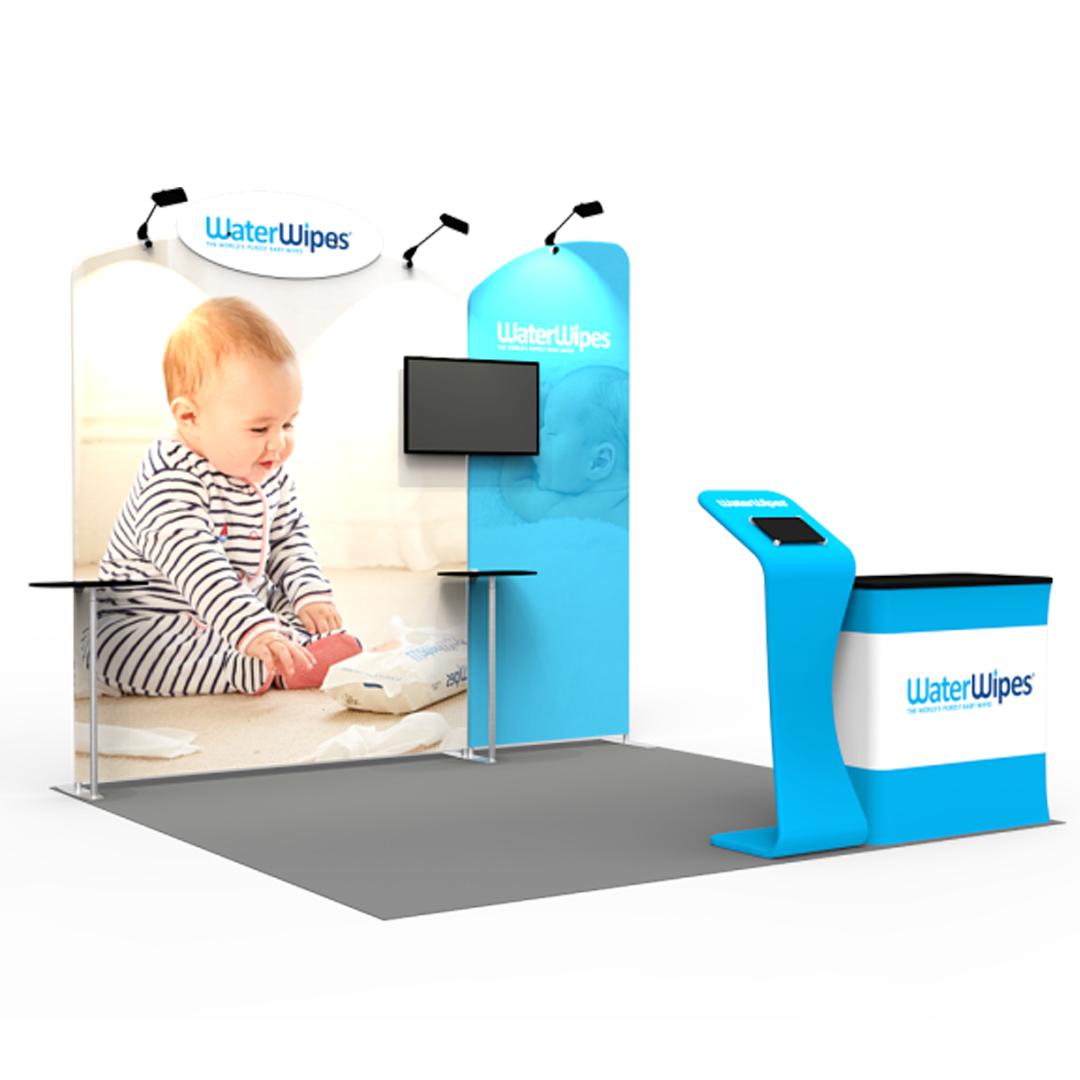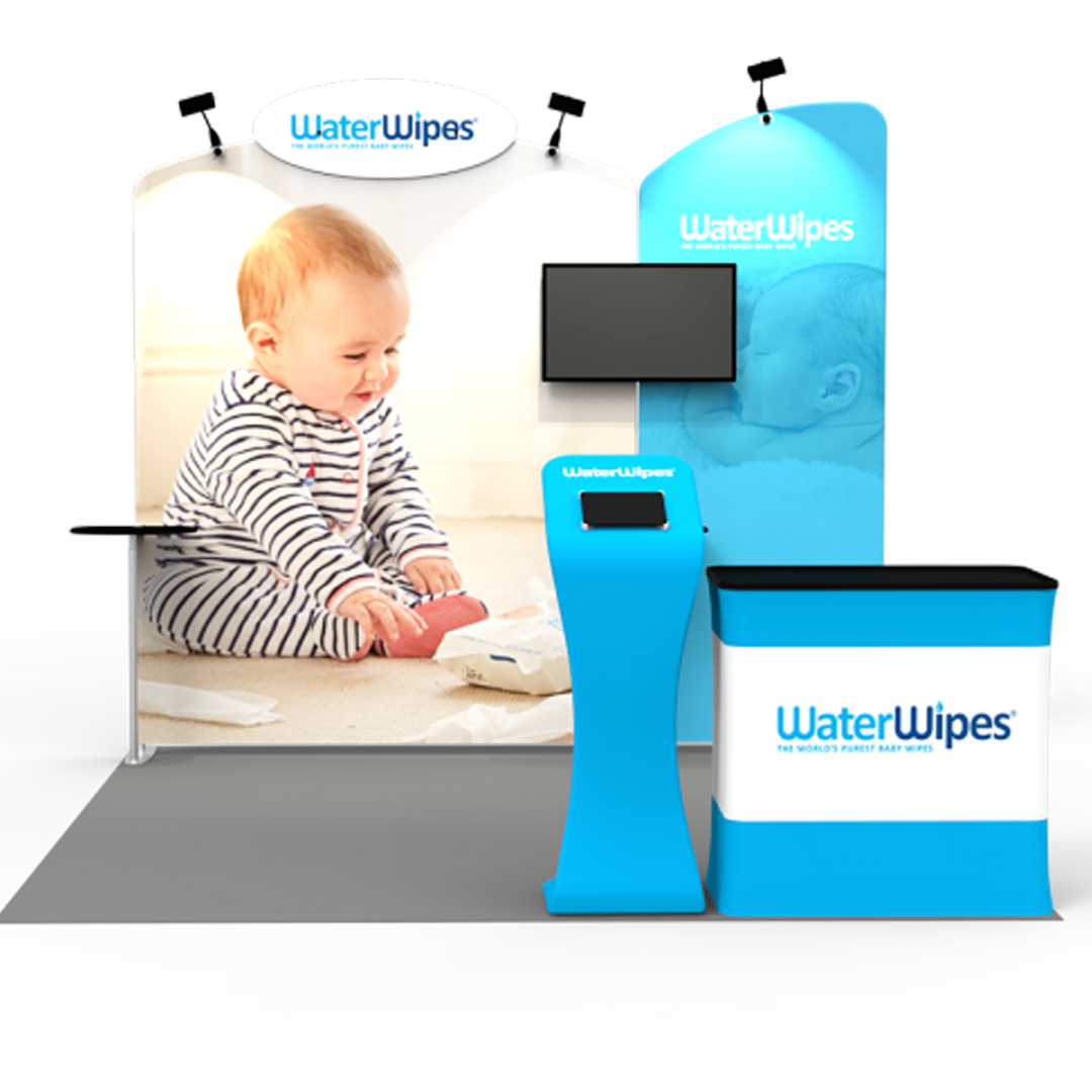 Whether you’re a small startup or an established brand, the 10 x 10 ft Trade Show Booth Display for Water Wipes gives you the tools you need to make a lasting impact. Make your mark at your next event and watch your connections grow!