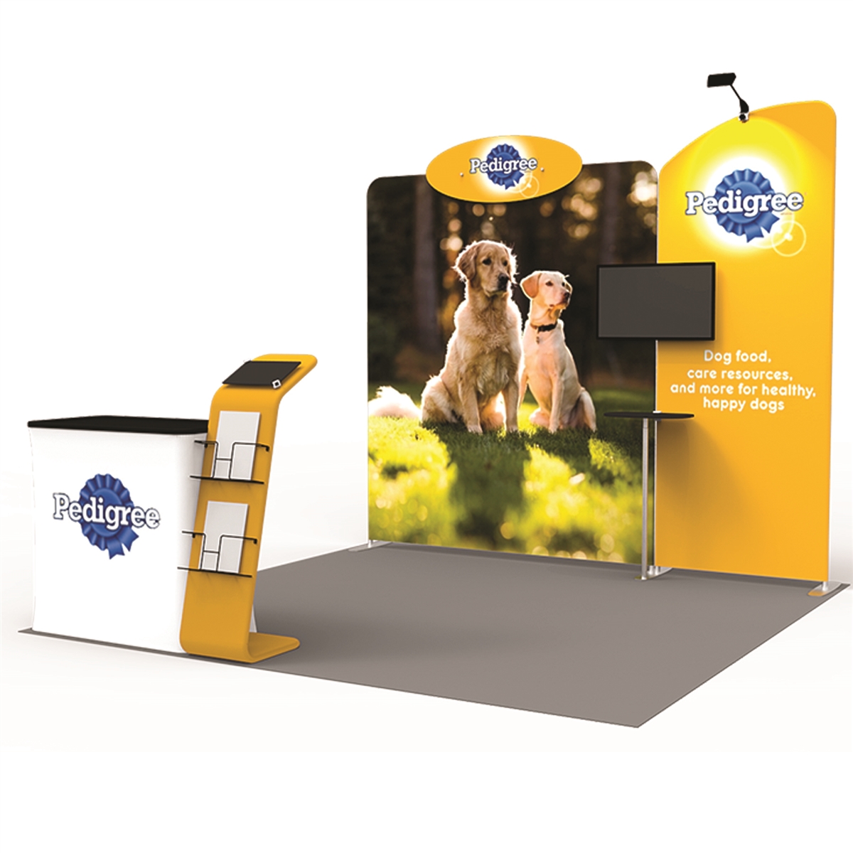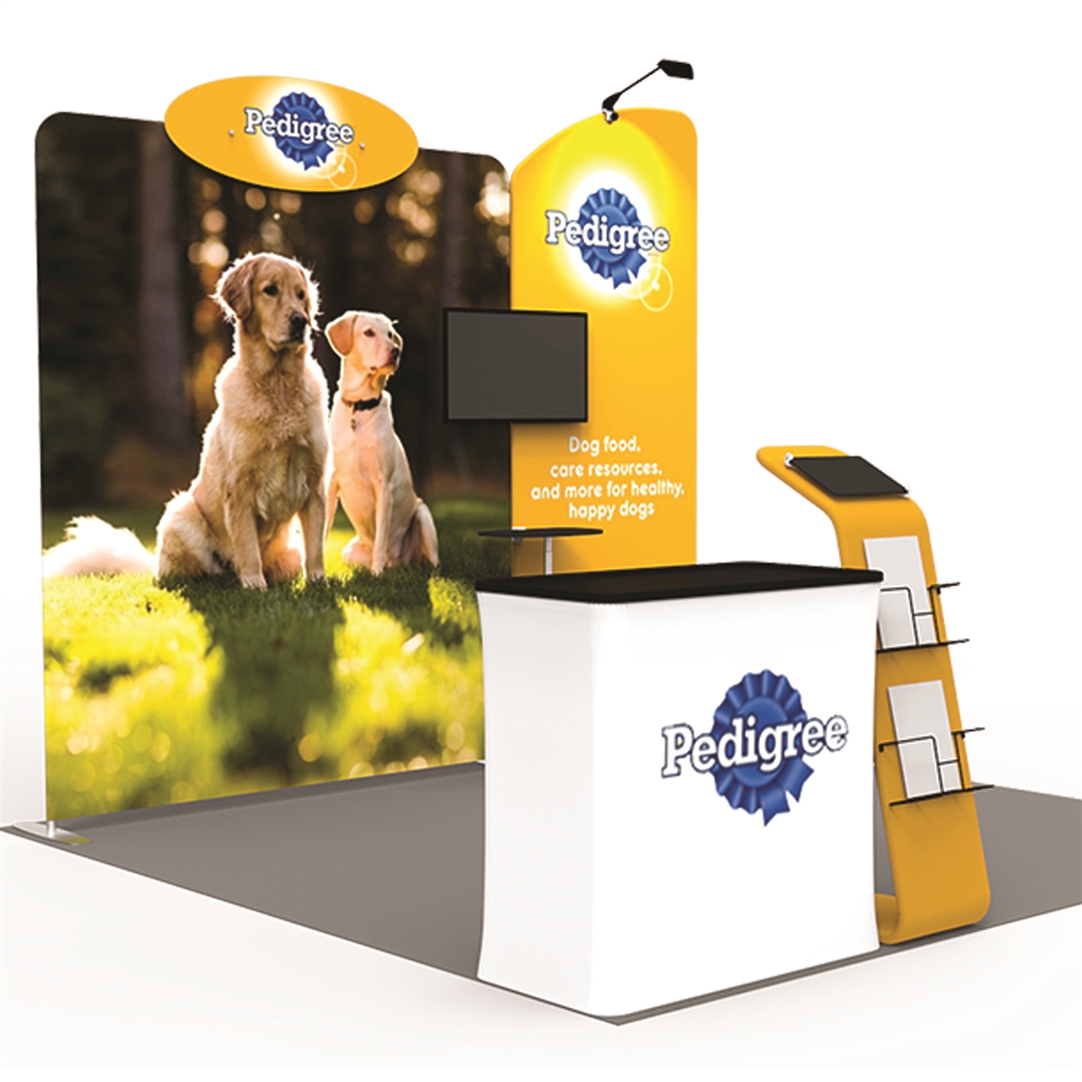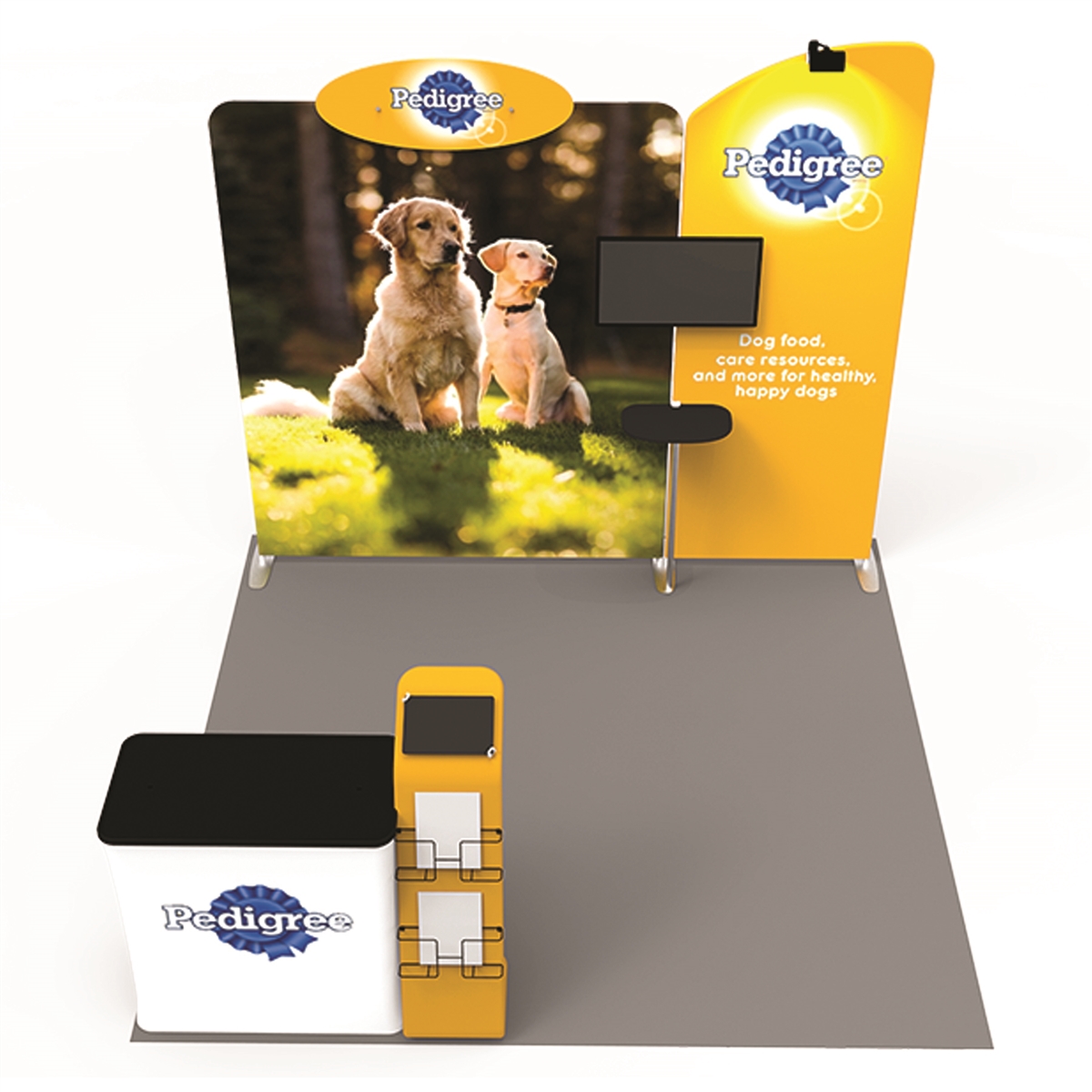 At your next trade show event, the 10 x 10 Trade Show Display Booth with Tapered Sign – Pedigree from Trade Show Display Depot is an exceptional choice that will draw attention to your brand. Designed by skilled trade show booth builders, this exhibit combines functionality with eye-catching visuals, making it an excellent investment for any company looking to enhance its presence.