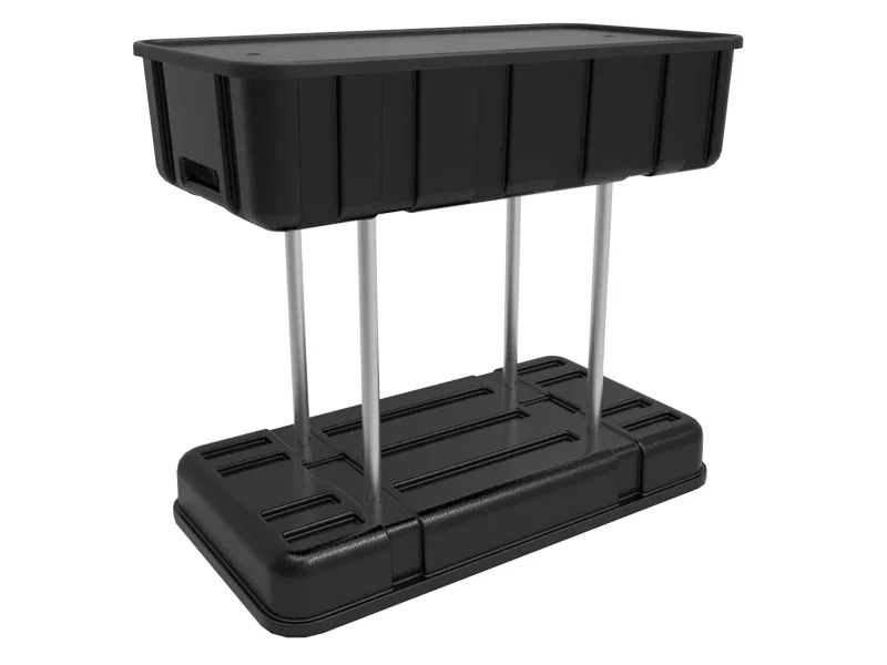 Support for storage solutions integrated into the booth.