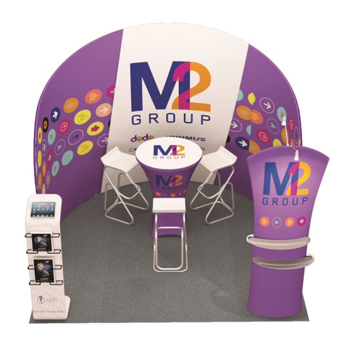 - Print two sides of the display for a full walk-around experience or flip your panel around to display an alternative message.