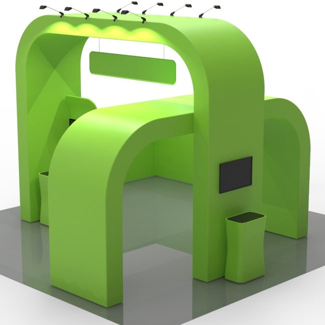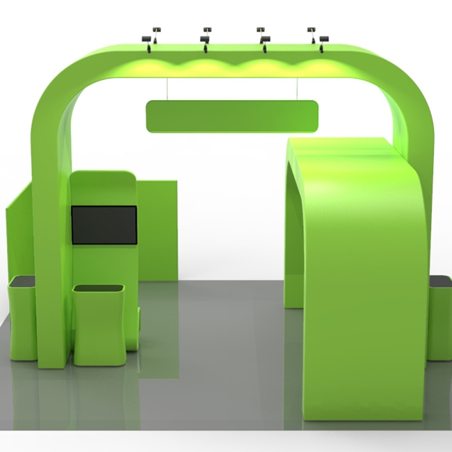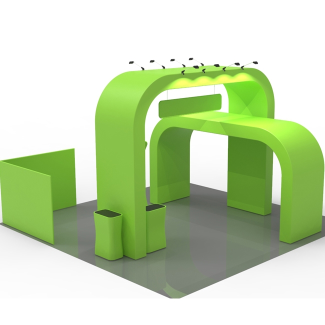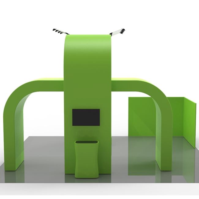 In the competitive world of trade shows, your trade booth design can set you apart from the crowd. The lofty design of the Big Arch booth ensures that your brand is visible from a distance, drawing in attendees who are curious about what you have to offer. Its arch shape not only enhances visibility but also creates a welcoming, open atmosphere that encourages engagement. This design is perfect for showcasing your products or services while providing ample space for interaction with potential clients.