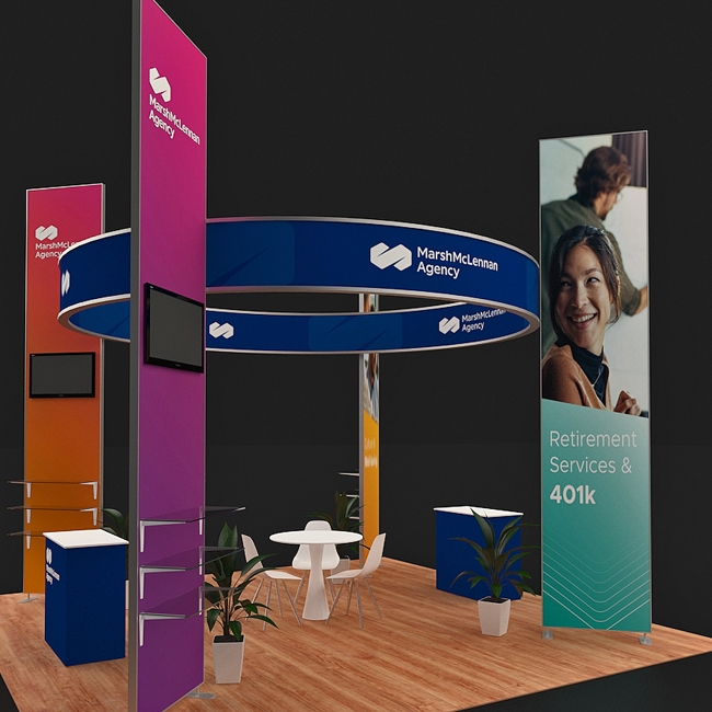 This backlit trade show display boasts an impressive height of 16 feet, ensuring your booth remains visible from across the exhibition hall. The eye-catching backlit design provides vibrant lighting that breathes life into your graphics, making your messaging clear and compelling. It’s the perfect way to showcase your brand’s story and products in an inviting manner.