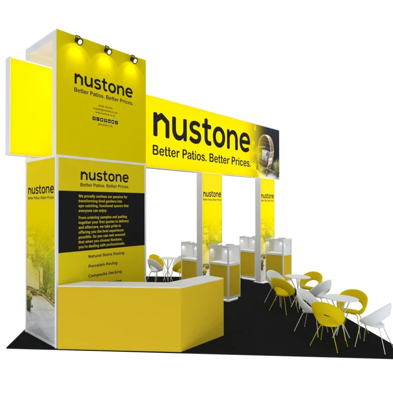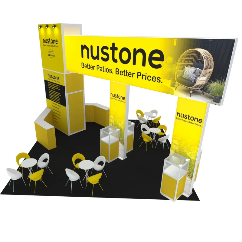 The Nustone 20×20 Trade Show Booth Display from Trade Show Display Depot is an outstanding choice if you want to leave a lasting impression with your exhibition booths. Let your brand shine and maximize your ROI with a booth designed to set you apart from the competition!