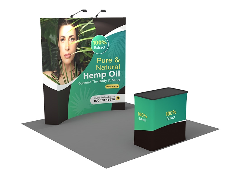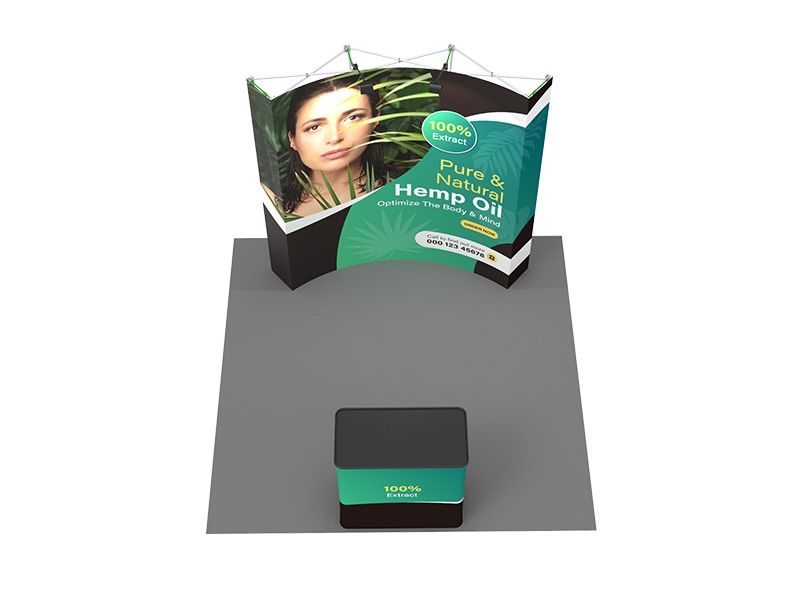 8ft Wide Curved Pop Up Fabric Display with Podium Counter