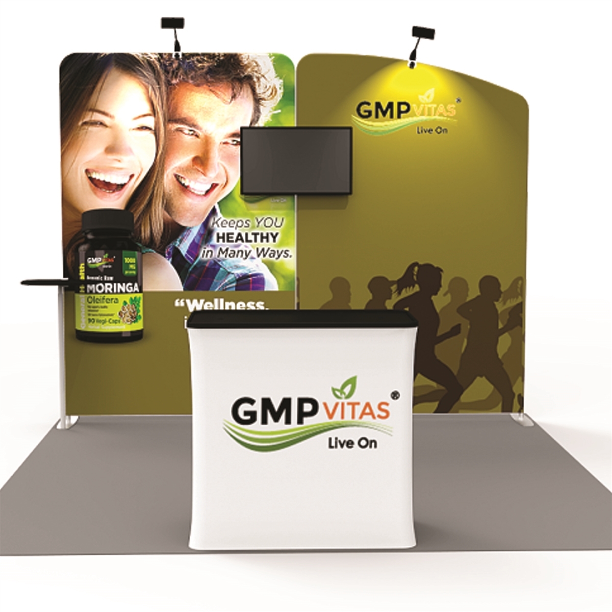The Formulate® Master Backwall Accent 04 Curved is an ideal space dividing accessory to connect to any Formulate Master straight backwall. It features a pillowcase fabric graphic and connects easily to create the appearance of one seamless display.